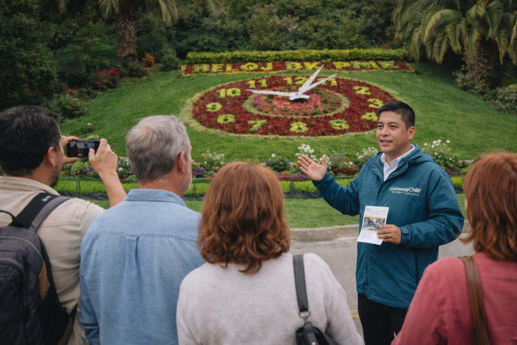 En Valparaíso recorrerás sus cerros más representativos, calles llenas de color, murales y miradores con vistas únicas al océano Pacífico. En Viña del Mar conocerás sus principales atractivos turísticos, como la costanera, el Reloj de Flores y sus elegantes avenidas frente al mar.